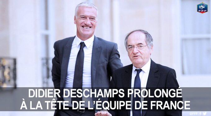 [OFFICIEL] - Didier Deschamps est prolongé à la tête de l'@equipedefrance jusqu'en 2020 !#FiersdetreBleus pic.twitter.com/4885Mb8bw4 | ||